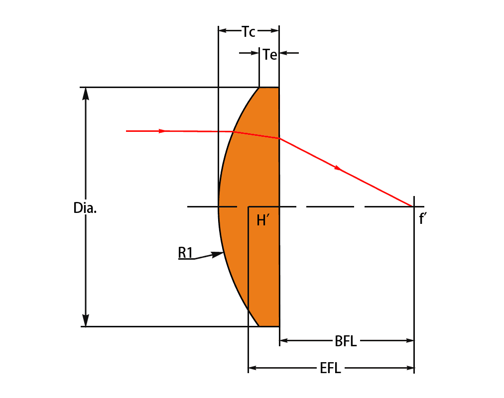 | Code | Material | AR Coating | D-mm | EFL-mm | BFL-mm | R1-mm | Tc-mm | Designed Wavelength |